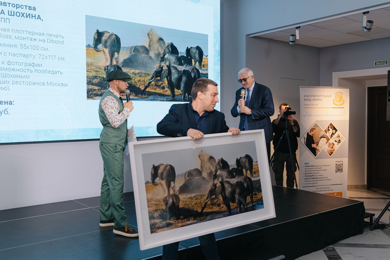 Особой частью вечера стал благотворительный аукцион в поддержку Фонда Жени Шохиной «Живём», который блестяще провёл шоумен Дмитрий Хрусталев.